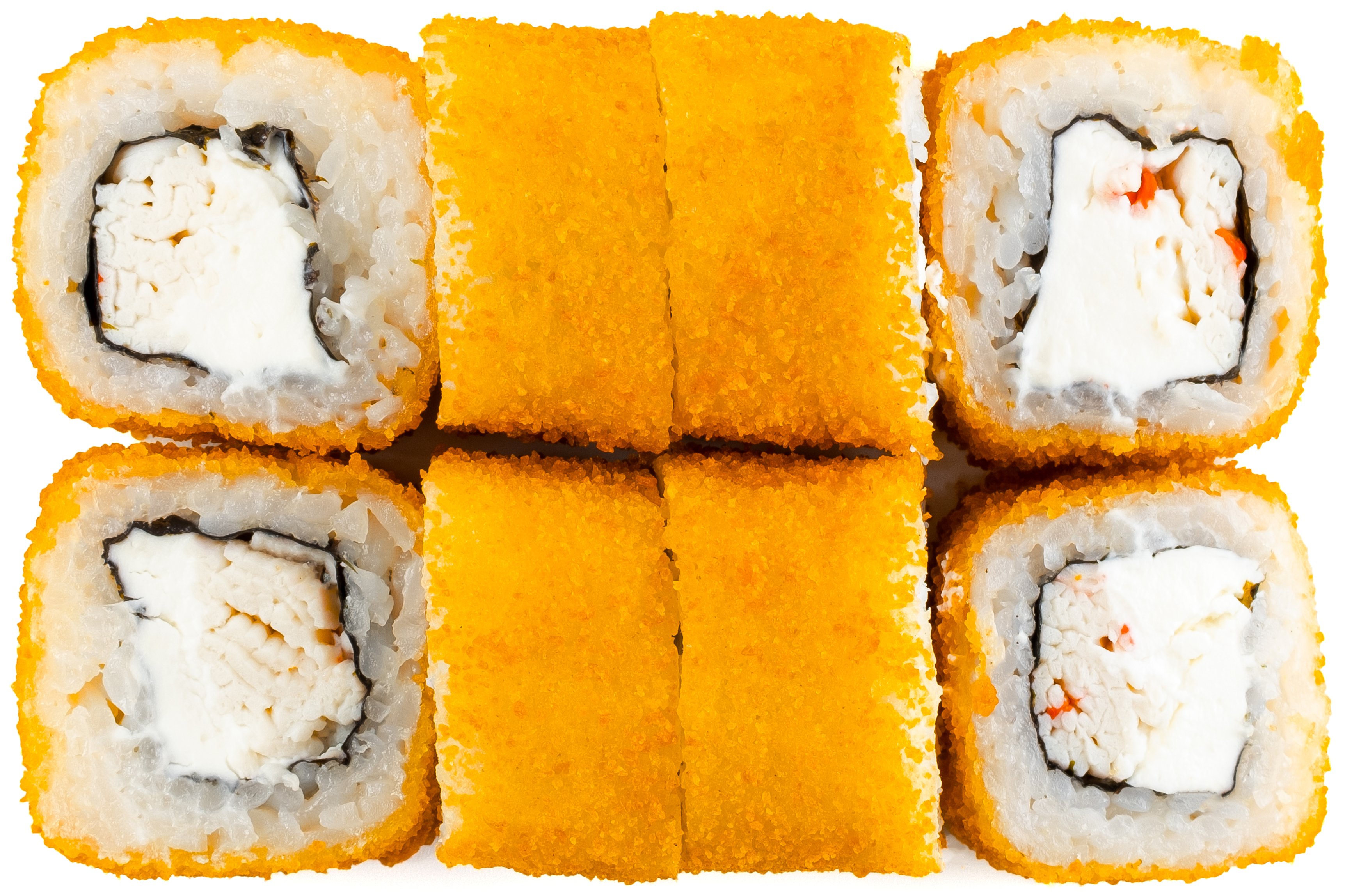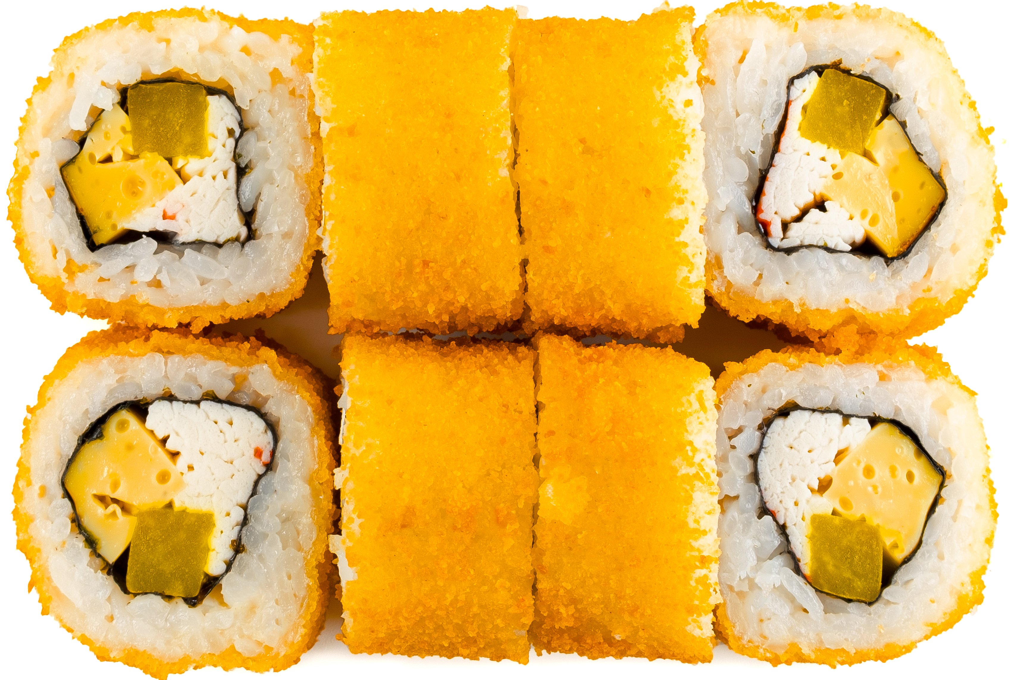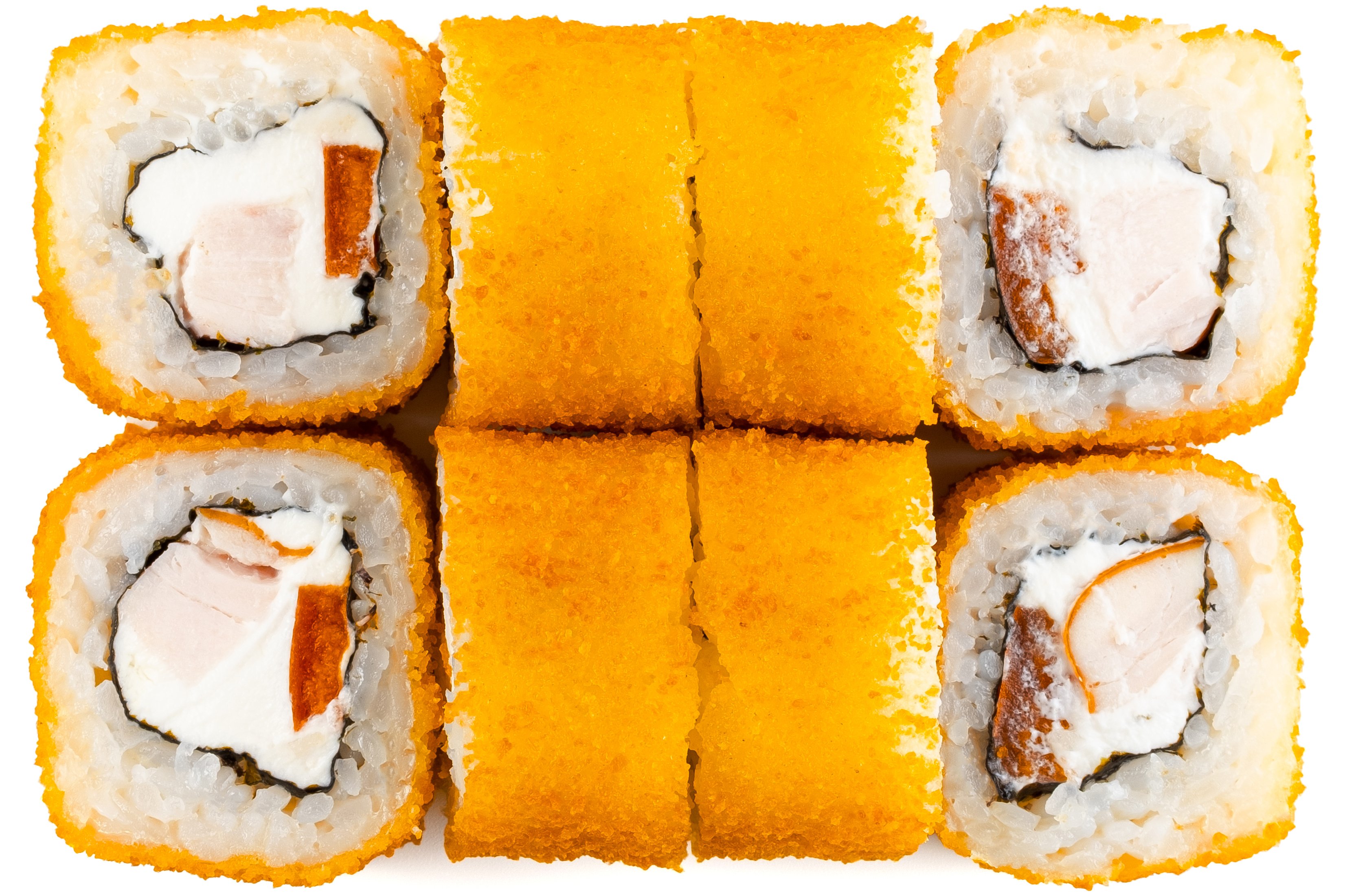 Рис, Маме Нори, Сыр плавленный, Сыр сливочный, Курица, Кляр, Шапка (майонез, тобико),