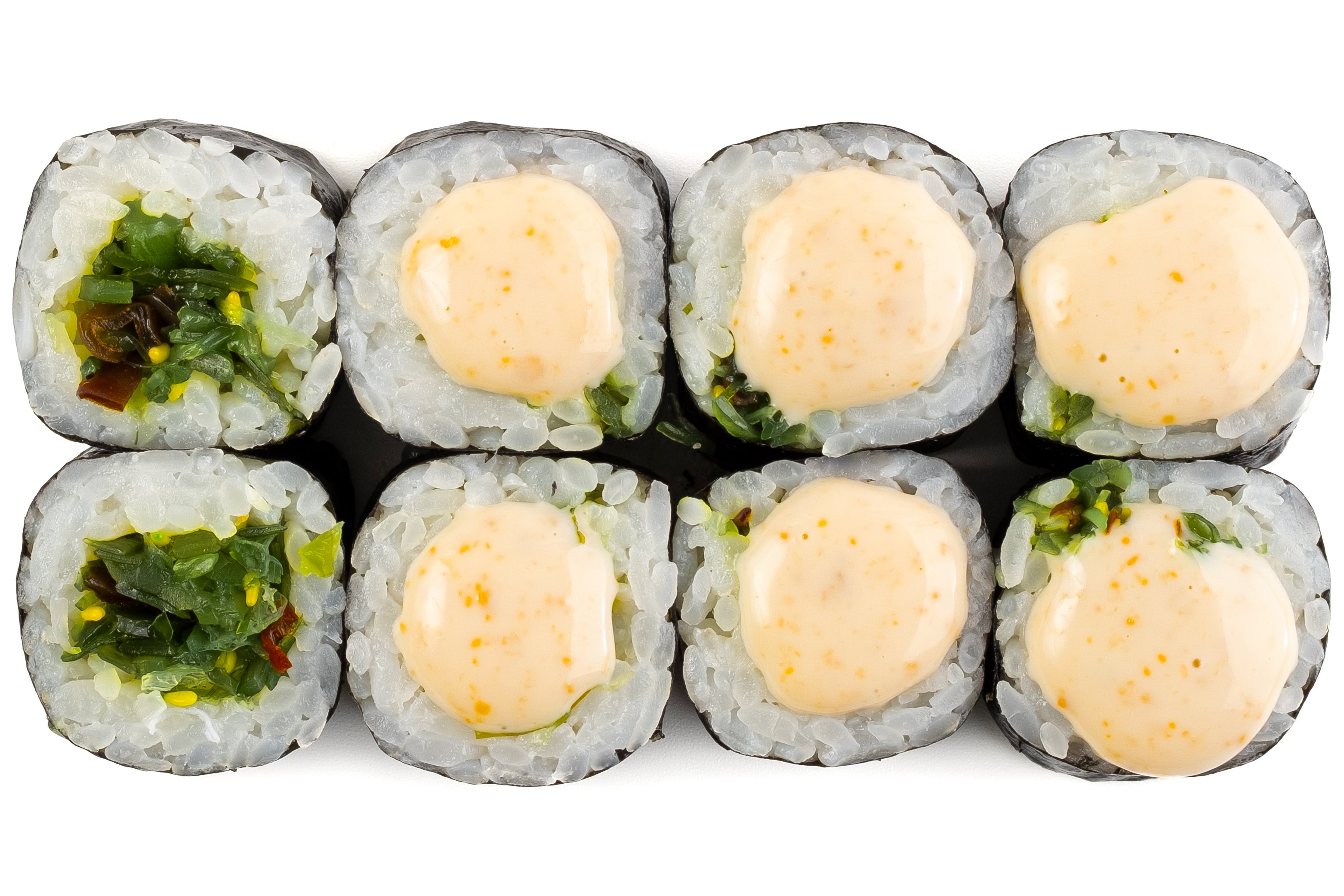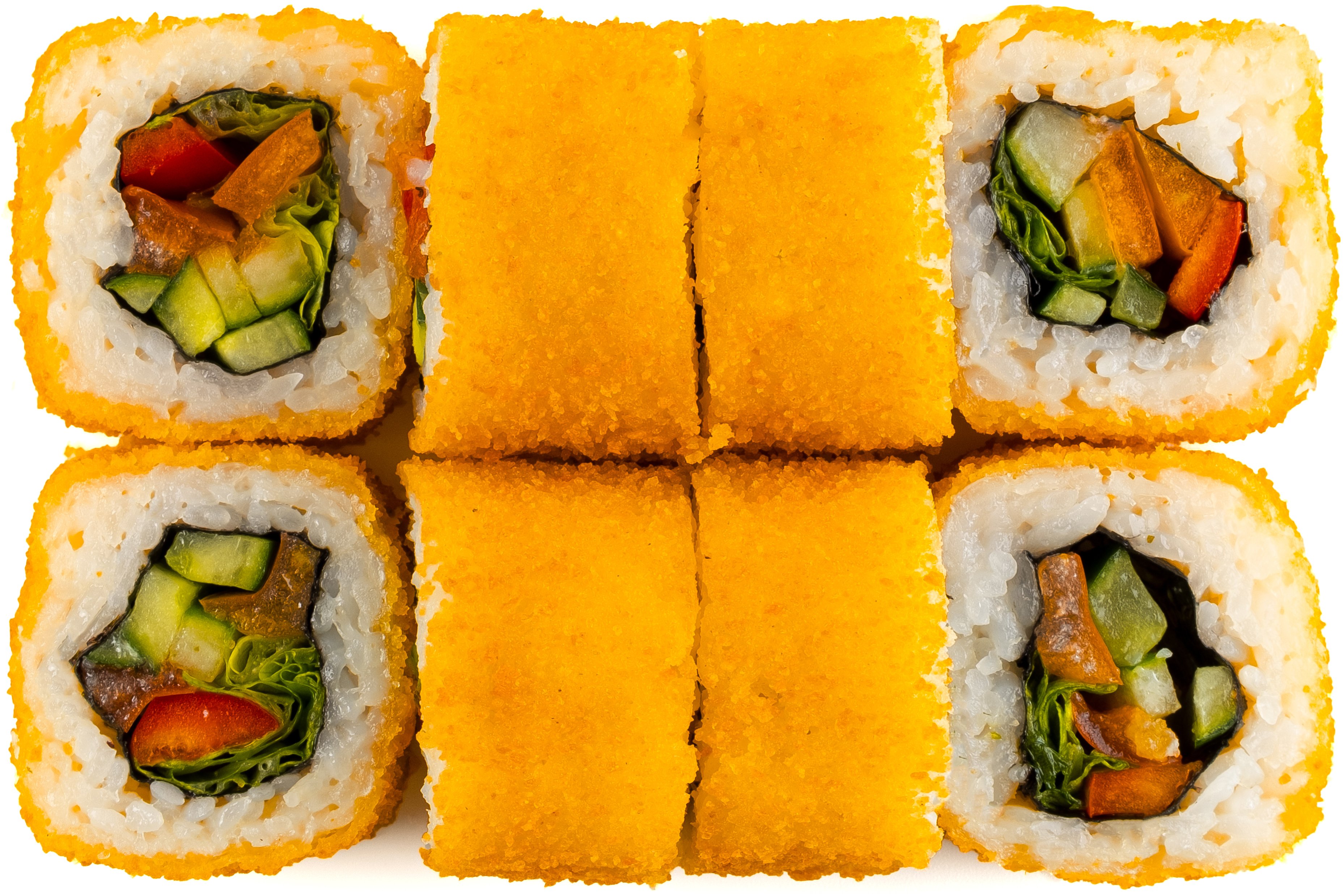 Кунжут, Лист салата, Нори, Огурцы, Перец болгарский , Помидор, Рис, Дайкон,