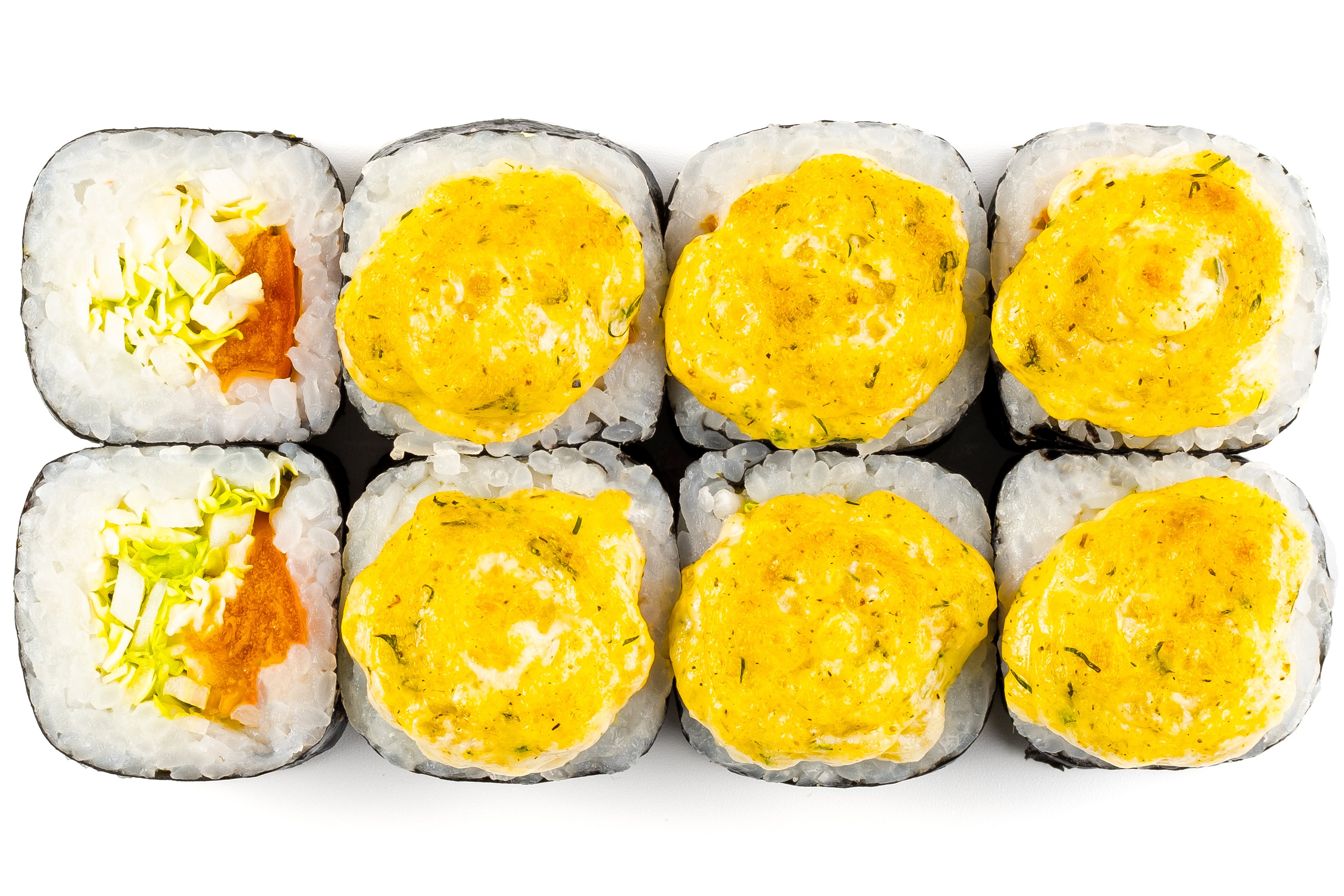 Курица, Моцарелла, Нори, Пекинская капуста, Рис, Спайси соус, Омлет Тамага,