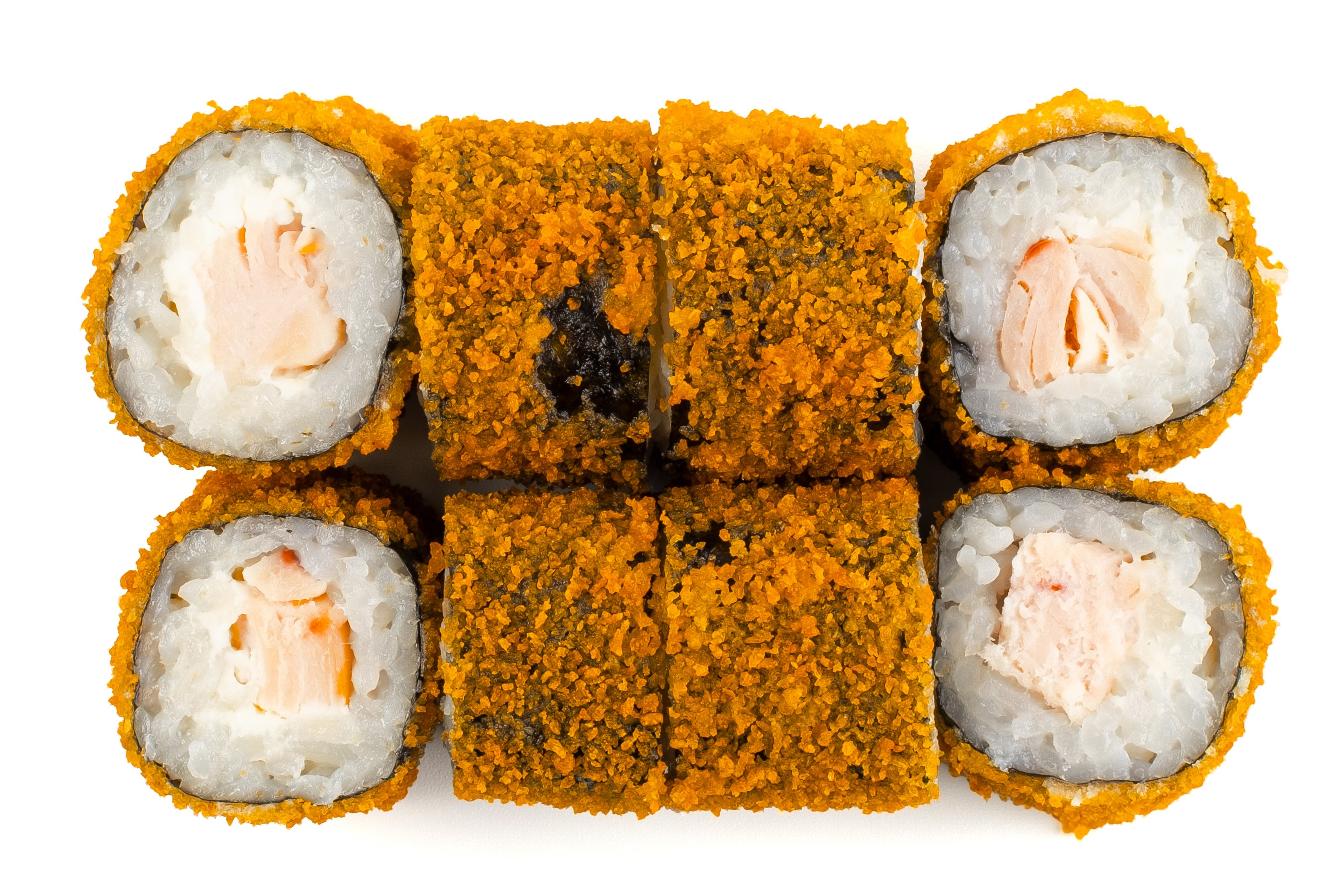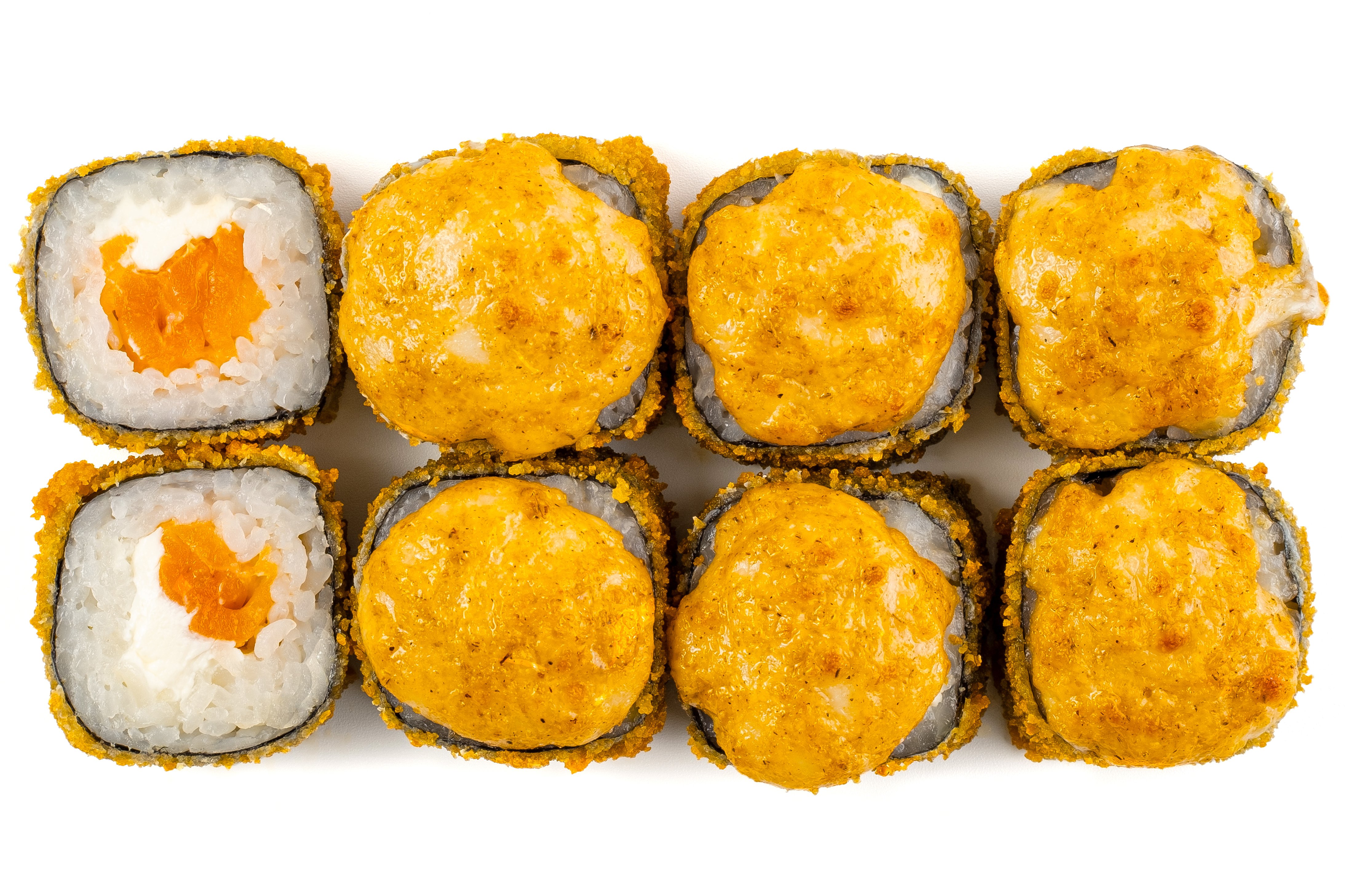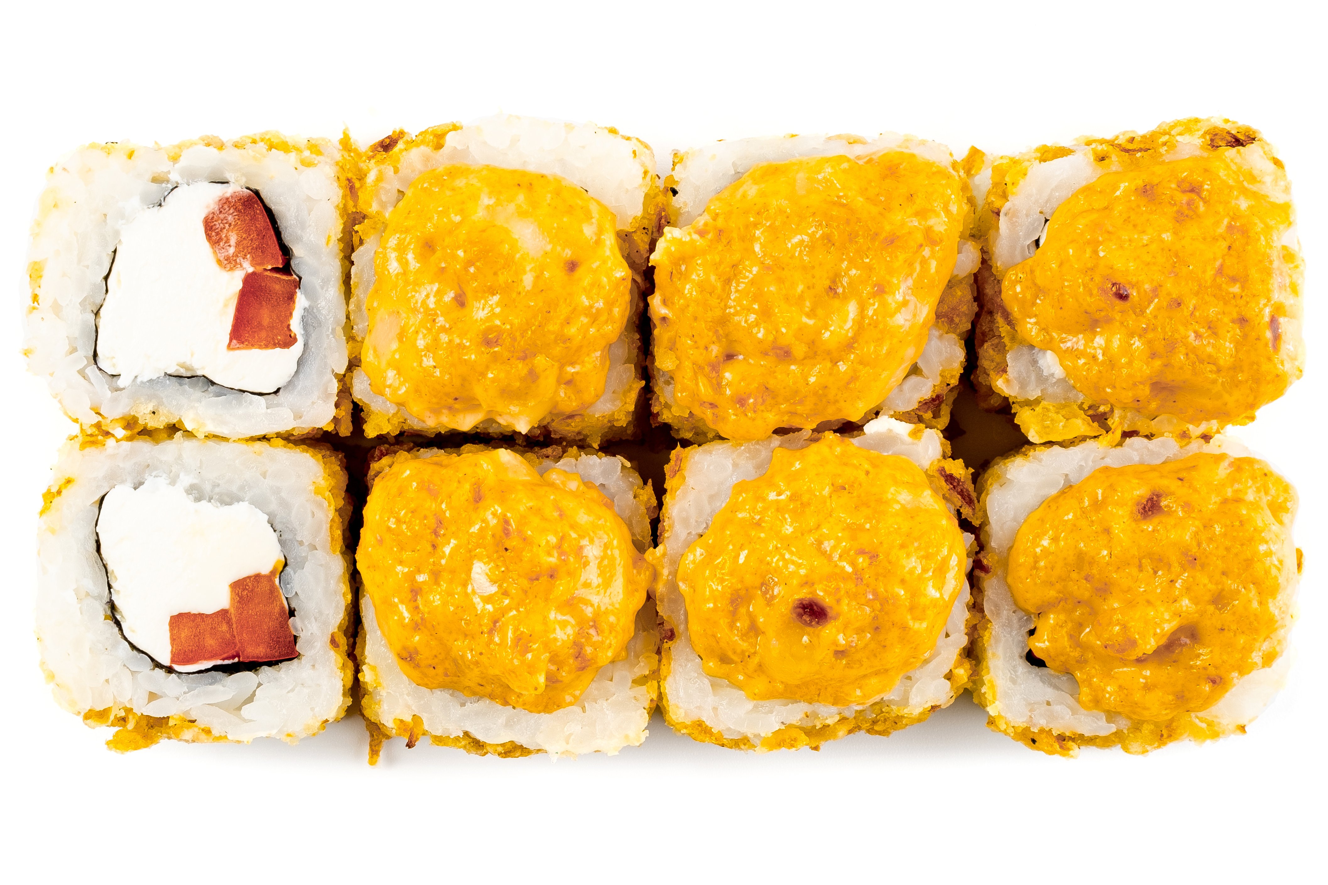 Рис, Нори, Сыр сливочный, Кляр, Сухари, Соус спайси с сыром, Лосось,