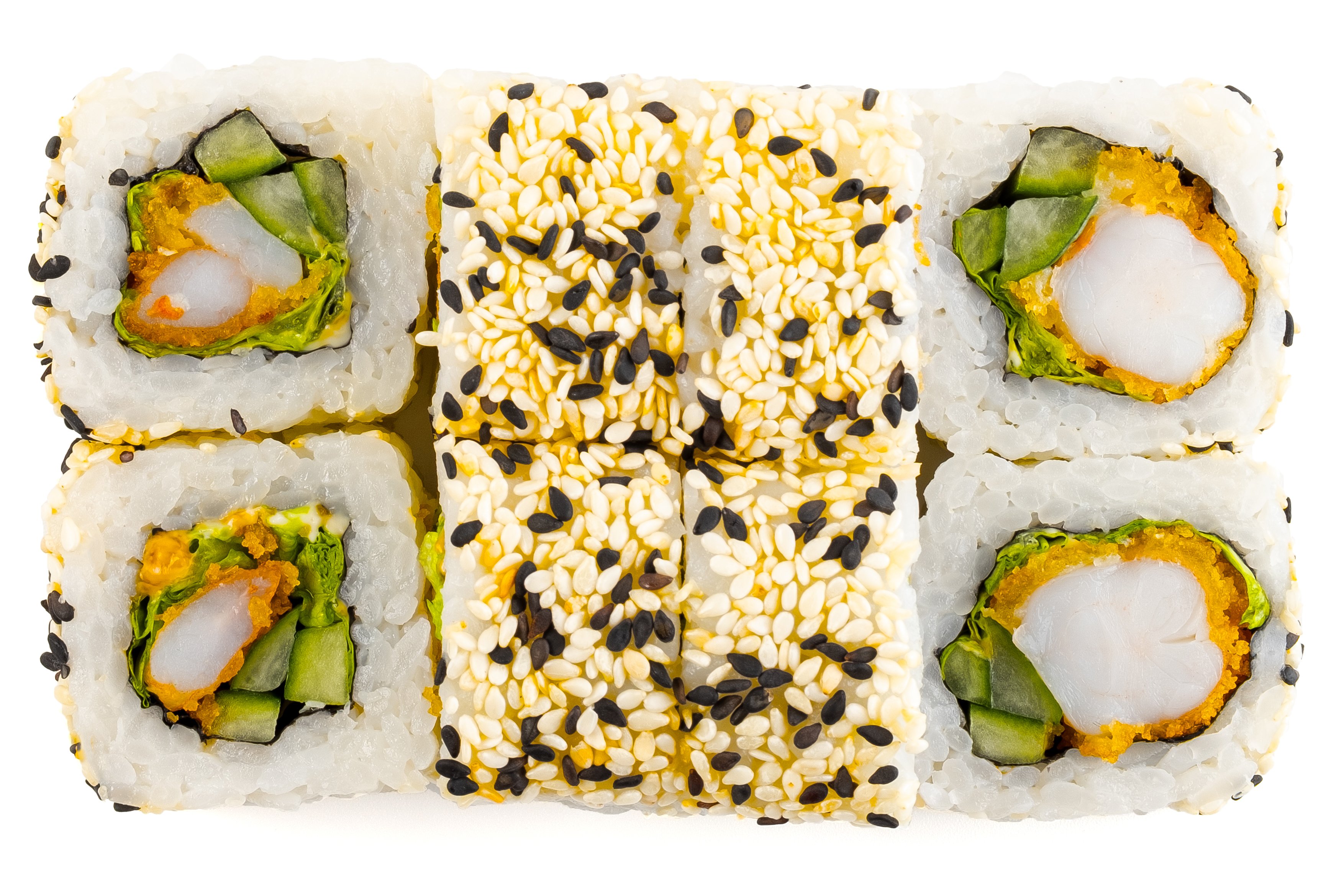 Кунжут, Лист салата, Нори, Огурцы, Перец болгарский , Помидор, Рис, Дайкон,
